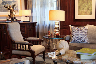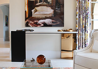Furnishings & Upholstery  Our approach to furniture and upholstery stems from an extensive knowledge of scale, proportion, and customization. A tasteful balance of color, texture, and style makes each piece unique to your home. We work with the finest workrooms and design trade resources to insure that our design vision is translated to perfection. Our signature blend of contemporary elements with authentic period pieces is achieved through our long standing relationships with vintage and antique resources both in the US and abroad.