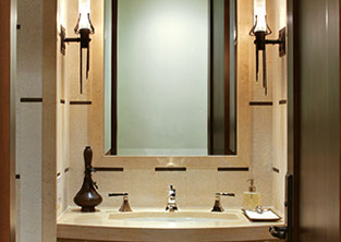 WINDOWS, WALLS AND FLOORING  Every surface of the home is a canvas - an opportunity to further relay the dialogue of design. A calculated approach to surfaces and windows maximizes light, texture, and visual interest in a space. The thoughtful juxtaposition of smooth stone surfaces and a rich woven rug creates balance and warmth. The layering of drapery panels, or the lack thereof, enhances architectural elements like windows and doors. From solar shades to multi layer treatments, every solution is considered and designed with your needs and the unique nuances of your home in mind. Our surface solutions include paint, plaster, tile, stone and wood flooring, specialty wall covering, and upholstery to further enhance the dimension and style of each space.